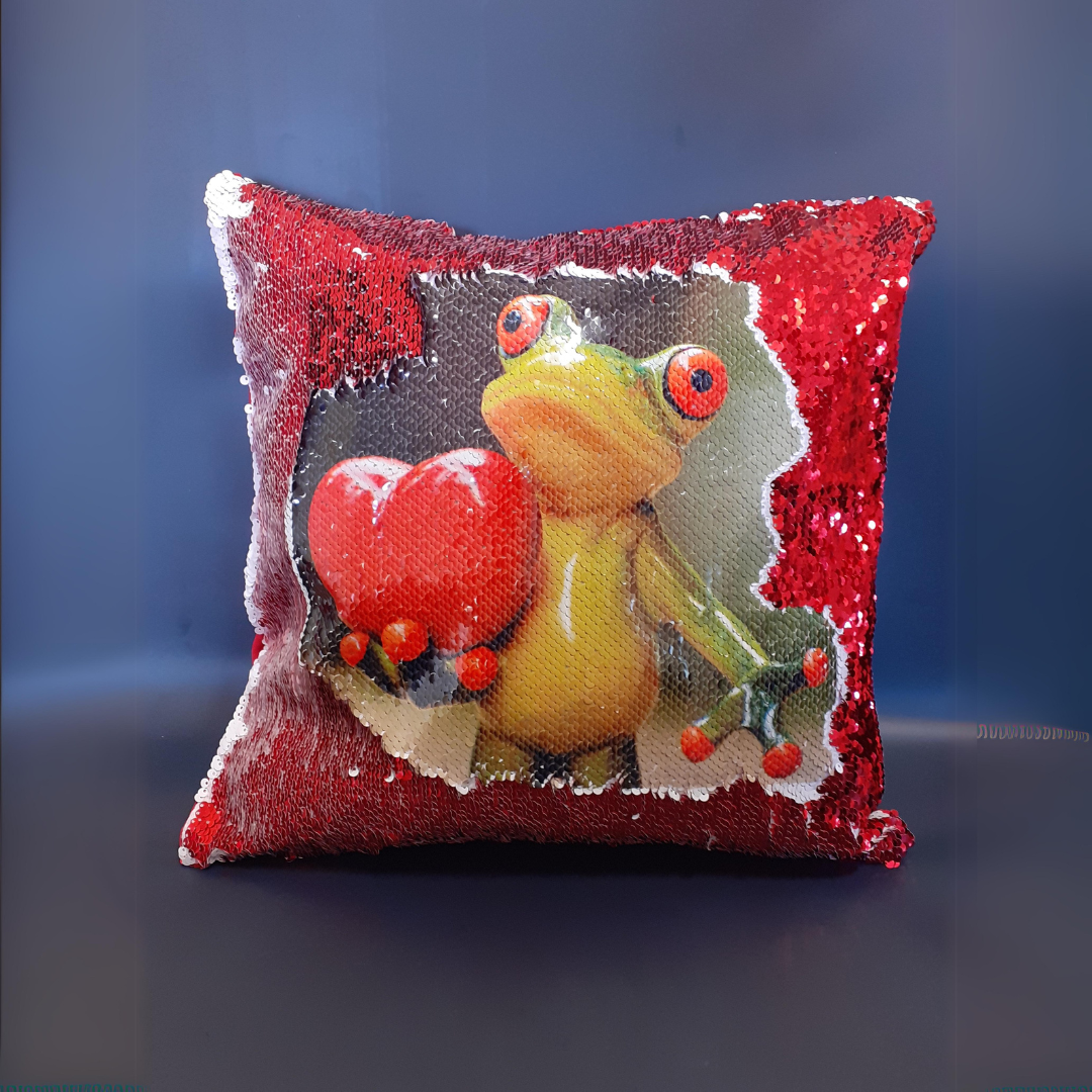 Ez a különleges párna aprószemcsés flitterekkel van ellátva, aminek egyik oldala nyomtatható. A másik oldala egy színből áll, ami lehet – piros, fekete, lila, kék (Fényképek esetén előfordulhat, hogy a flitterek nem pont ugyan oda simulnak vissza, így fehér pöttyök lehetnek. Inkább feliratok, logók, vektoros alakzatok nyomtatására alkalmas.)